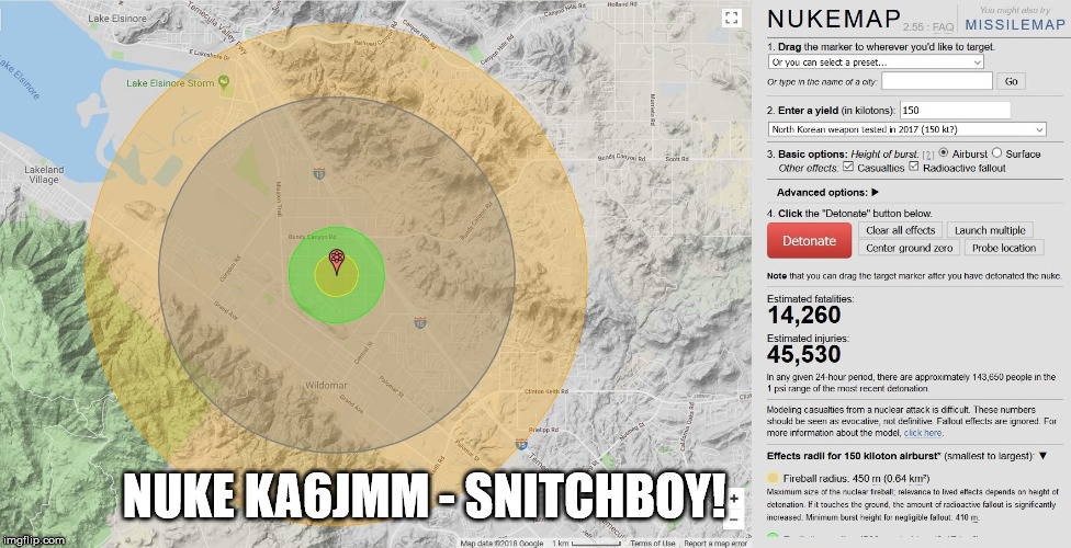 Comments: W6OF is the blight of 435. Fucking jackoff sits around with a bluetooth in his ear babbling away on the repeater all day while supposedly "at work". Wonder how his employer would feel if they found out he was fucking off all day on ham radio?